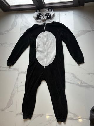 Pijama de oso panda con capucha. - Diseño divertido de panda. - Material suave y cómodo. - Cierre frontal con cremallera.