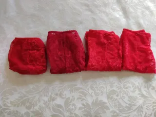 Conjunto de bragas de encaje en color rojo. Son nuevas y sin usar. - Talla XL. - Diseño de encaje floral. - Cintura elástica.