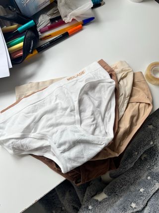 Braguitas sin estrenar. - Pone talla M pero en realidad equivale a una talla S - Son 5 braguitas A ESTRENAR - Diseño moderno y cómodo. - Tejido suave al tacto.