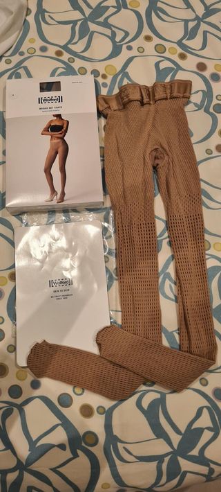 2 Pantis de fantasía con un diseño de rejilla. Marca alemana, sin estrenar, su precio es de 50€ cada una. Las he comprado en el corte ingles. Las vendo a mitad de precio sin estrenar. Marca Wolford, alemana de inmejorable calidad y comodidad. Son talla S pero corresponde a mediana o T38. - Cintura elástica con detalle. - Tejido calado. - Acabado mate.