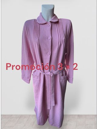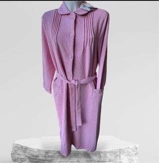 Bata de casa de la marca Énfasis en color rosa. Es cómoda y elegante, ideal para estar en casa.(comprada en El Corte Inglés.) - Diseño con cuello - Cierre de botones - Cinturón para ajustar - Bolsillos laterales Adjunto medidas↩️ De hombro a hombro 42’5cm De sisa a sisa 58cm Cadera 62 Cm. Bajo /ancho 69Cm. Largo total desde el hombro hasta abajo, 113Cm