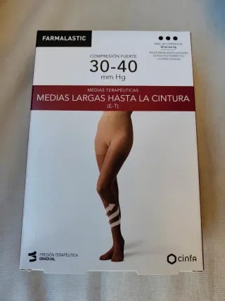 Medias de compresión fuerte 30-40mm Hg, 280 DEN, están sin estrenar, todas son talla Grande. Marca Farmalastic