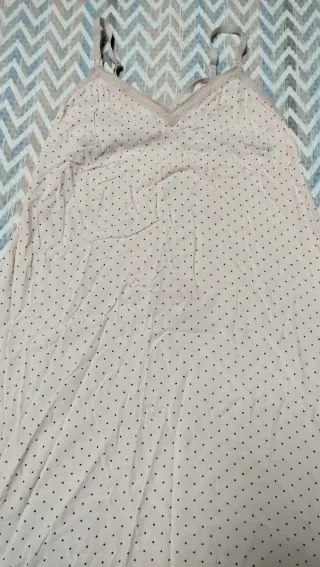 Pijamas cómodos para el embarazo y lactancia. Lo he usado pocas veces. Los dos primeros talla S pero son amplios y el último L. Uso una talla 36-38 para que os hagáis a la idea. - Tejido suave y transpirable. - Diseño con tirantes finos. - Adorno de encaje en el escote.