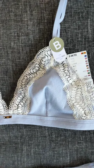Totalmente nuevo con etiquetas. La parte de arriba 90B y la braguita una M.