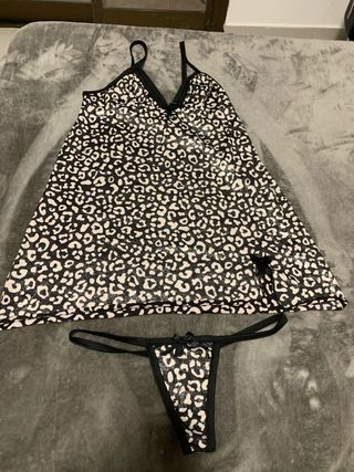 Conjunto de pijama para mujer con estampado de leopardo. - Camiseta de tirantes. - Braguita a juego. - Venta preferiblemente en persona