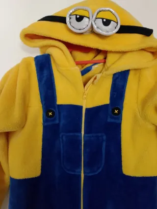 Divertido pijama con diseño de Minion, ideal para los fans de la película. Talla 10años - Mono completo con capucha. - Cierre de cremallera frontal. - Detalle de ojos y gafas en la capucha. - Tirantes y bolsillos simulados.