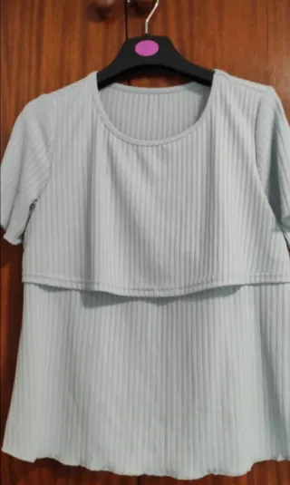 Pijama cómodo y funcional, diseñado para el embarazo y la lactancia. - Tejido suave y elástico. - Diseño de dos piezas superpuestas para facilitar la lactancia. - Manga corta.