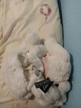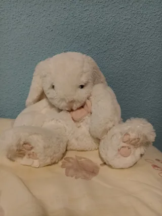 Guarda pijama con forma de conejo de peluche de la marca Etam. - Suave al tacto. - Color blanco con detalles en rosa. - Ideal para guardar el pijama y decorar la habitación.