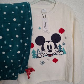 Conjunto de pijama de Disney con estampado de Mickey Mouse. Calidad El Corte Inglés. - Suave tejido de forro polar. - Diseño invernal con árboles y copos de nieve. - Parte superior de manga larga. - Pantalón con estampado de puntos y copos. Nuevo, con etiqueta. Oferta por 19€