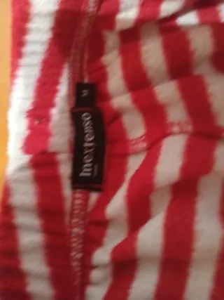 Pijama cómodo con estampado de rayas rojas y blancas. Ideal para descansar. - Tejido suave al tacto. - Cintura elástica para mayor comodidad.