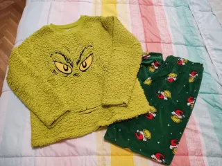 Conjunto de pijama con estampado de El Grinch. - Parte superior de tacto suave. - Pantalón con diseño de El Grinch y detalles navideños.
