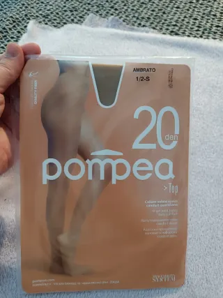 Dos pares de medias de la marca Pompea, ideales para el día a día. - Un par en color beige (Ambrato). - Un par en color negro (Nero). - Grosor de 20 deniers. - Acabado mate y transparente. - La media color carne talla: S - La media negra es talla: M Los dos pares de medias por 8 euros. Un par, 5 euros.