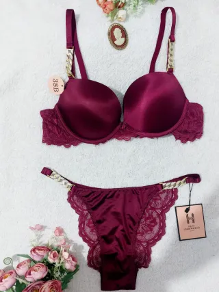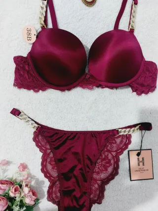 Precioso conjunto de lencería en tono burdeos con muy bonito detalle de finas cadenas con pedrería 🥀✨️ Sujetador súper suave y muy cómodo con relleno push up para realzar el busto 💫 Tirantes ajustables Sujetador 95B Braga talla L Lovely, beautiful, superbe 🥀✨️🥀✨️🥀 #lacelingerieset #biancheriaintimadonna #conjuntodelenceria #lenceriaburdeos #ensemblelingerie #pushup #burgundylingerie Conjunto de lencería de dos piezas. - Sujetador push-up con detalles de encaje. - Braguita a juego con detalles de encaje. - Tirantes con adornos de cadena.