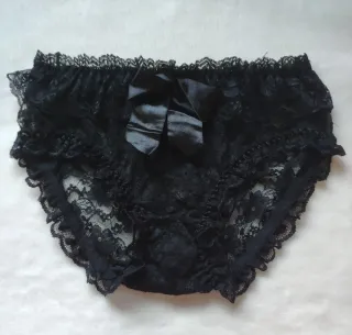 Braguitas de encaje con un diseño delicado y femenino. Cuentan con detalles de encaje negro en los bordes y un coqueto lazo negro en la parte delantera. - Tejido principal de encaje. - Ribete de encaje negro. - Lazo decorativo negro.