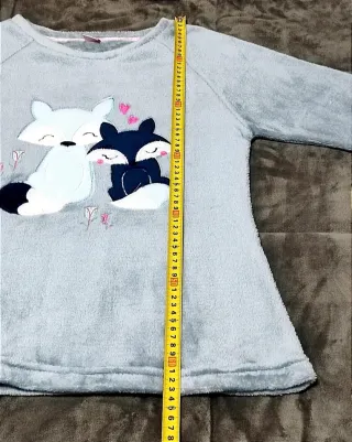 Pijama de terciopelo con diseño de zorros y flores, con pelitos por dentro y por fuera. Talla... pone XXL, pero creo que es una L, ver fotos. Marca Sweet Secret. Nuevo. Medidas en fotos.
