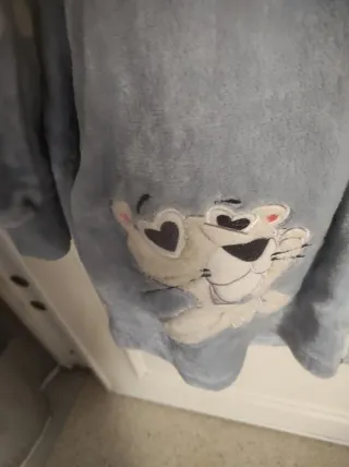 Pijama liso a estrenar de felpa. Exterior suave y ligero, interior liso sin pelusa. Superficie suave, afelpada y esponjoso. Algodón o mezcla.