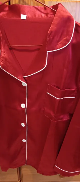 Pijama Satén Rojo con Ribete Blanco