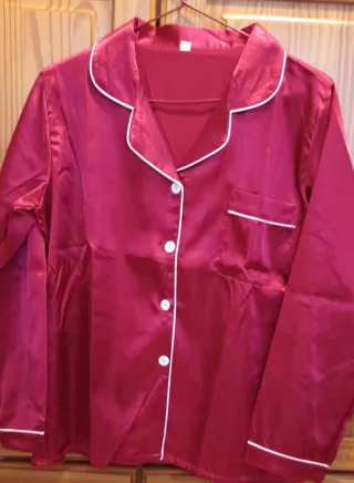 Pijama de satén con un diseño elegante y cómodo. - Tejido suave y brillante. - Detalle de ribete blanco. - Cierre de botones. - Bolsillo en el pecho.