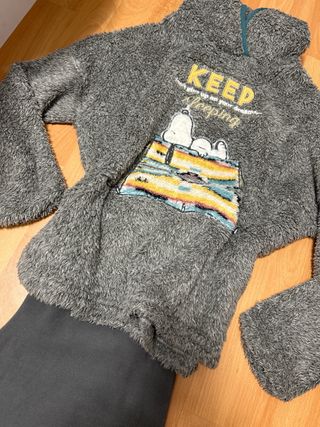 Conjunto de pijama de tejido suave, ideal para estar cómodo en casa. Diseño con personaje Snoopy. Buen tejido, de forro polar, abriga bastante y es súper acogedor Cintura con goma elástica por lo que puede servir para varias tallas