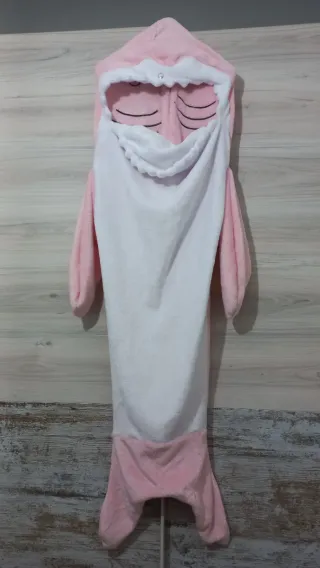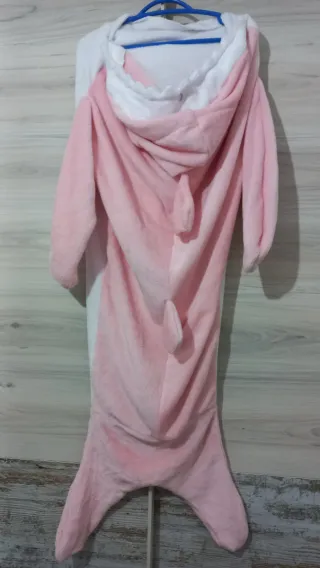 Pijama manta con diseño de tiburón en color rosa y blanco. Ideal para estar cómodo en casa. - Mide 135 cm de largo. - Material suave y cálido.