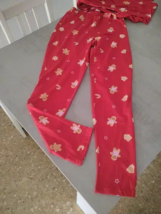 Conjunto de pijama con estampado navideño. Diseño con galletas de jengibre y estrellas. Tejido suave y cómodo. - Pantalones de cinturilla de goma elástica. - Largo pantalón: 95 cm. Ancho cintura: 32 cm. - Ancho camiseta (hombros): 45 cm. Ancho camiseta (pecho): 47 cm. Largo camiseta (desde cuello): 61 cm.