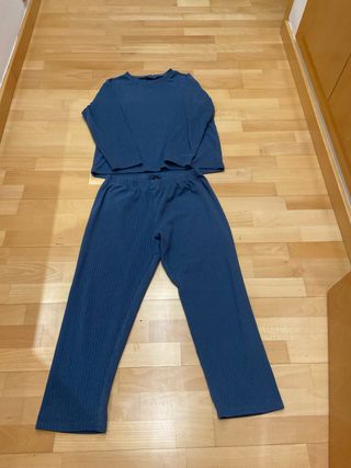 Conjunto de pijama muy calentito para estar cómodo en casa. - Tejido de canalé. - Manga larga. - Pantalón largo.