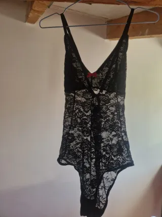 Conjunto de body de encaje con medias. - Diseño de encaje floral. - Tirantes finos. - Incluye portaligas. Mucha elastidad. La foto 2 parece mucho a lo que tengo.