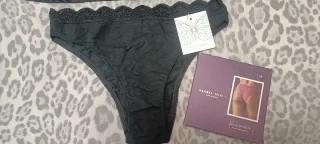 Conjunto negro 🖤de camiseta interior y braguita brasileña, marca Ysabel Mora.🎁🎁 Calidad y elegancia. Talla Mediana- M. - Camiseta con tirantes finos , ajustables y detalle de encaje. - Braguitas con cintura de encaje. - Nuevo con etiquetas y en su caja original.💯 - Precio no negociable. - 8€. - Envío rápido