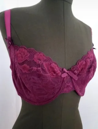 Sujetador de color granate con tirante robusto y regulable. Talla 100C de la marca Lazo importado por el Corte Inglés ( Talla Española ) El color es granate Mira bien las fotos El color real es el que se ve en las fotos sobre la mesa con el fondo blanco En las fotos sobre el maniqui se ven un poco más claro de lo que es Foto hecha sobre maniquí talla S Que de pecho es más o menos una 85 por lo que queda un poco grande en el maniquí. Buena calidad. Buenos acabados. Tres filas de corchetes traseros para abrochar. Como nuevo. Puesto una sola vez. Me va grande. Como nuevo