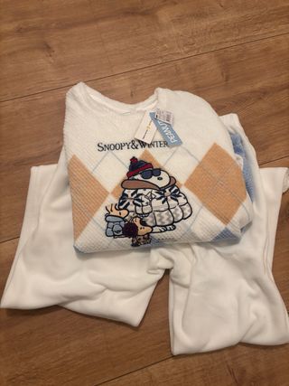 Conjunto de pijama de Snoopy de Women'secret, muy comodo y completamente nuevo - Diseño con estampado de rombos. - Personaje de Snoopy bordado. - Tejido suave y cálido.