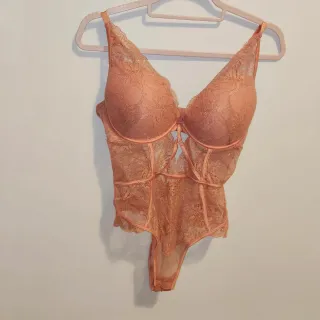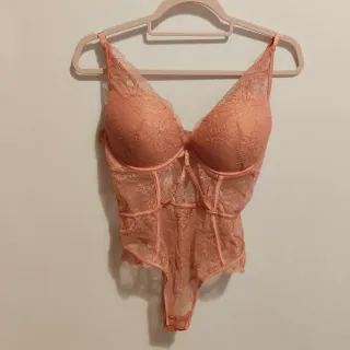 Body de mujer con sujetador incorporado y detalles de encaje. Diseño del sujetador con aro. Acabado en encaje floral. Se cierra con corchetes. Está en perfecto estado. Lo único que está la etiqueta cortada