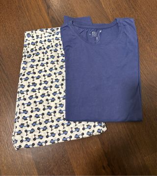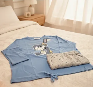 Pijama Women Secret de Snoopy con estampado Always Together. - Diseño con Snoopy y Woodstock. - Cuello redondo con pespuntes. - Tejido suave y cómodo. Azul marino Talla S Nuevo a estrenar