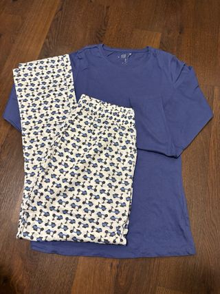 TALLA M amplia Precioso y cómodo pijama dos piezas. -Tela franela con flores en rosas y verdes. -Tejido suave y cálido. -Camisa de manga larga con bolsillo y botones. - Pantalón largo con cintura elástica. Se entrega limpio y listo para usar. DALE VIDA 🌎... Más pijamas,camisones, batas para casa abrigo,camisetas interior, zapatos, deportivas, libros, bolsos, juguetes, peluches, pantalones, SIKSILK, abrigos y cositas interesantes en mi perfil de todo tipo BARATISIMAS...