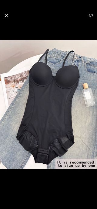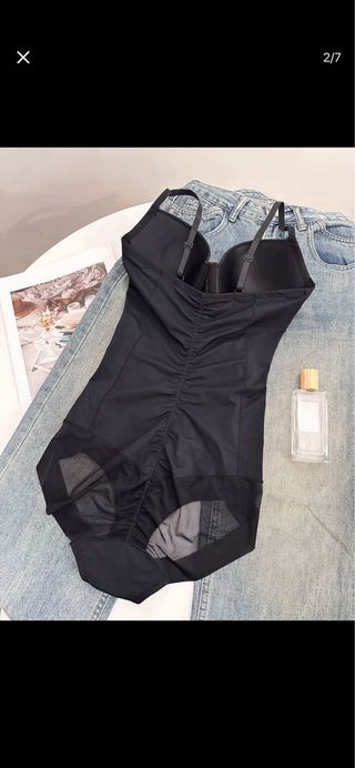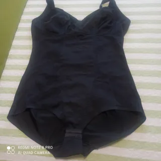 Body moldeador de color negro, talla XS Diseñado para ofrecer comodidad y estilizar la figura. Me viene pequeño sin usar - Tirantes finos ajustables. - Copas con aros para soporte. - Tejido elástico y transpirable. - Cierre de corchetes en la entrepierna. - Panel de malla en la zona de las caderas.