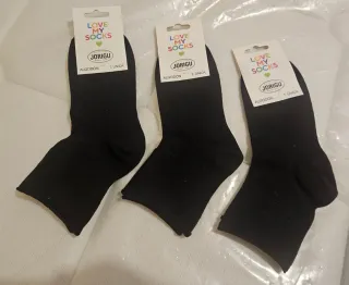 Pack de tres pares de calcetines de la marca Jorigú. - Fabricados en algodón. - Diseño sin costuras para mayor comodidad. - Talla única, corresponde a una 37 aproximadamente. Echa un vistazo a mi perfil para negociar precios por lotes :) ¡Feliz día!
