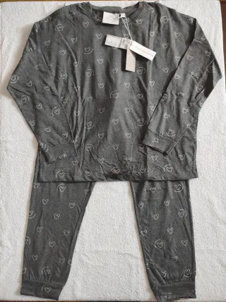 Nuevo, sin estrenar y con etiquetas. Más modelos en mi perfil. Conjunto de pijama largo de Miffy con un divertido estampado de manchas en tonos grises. Talla S.