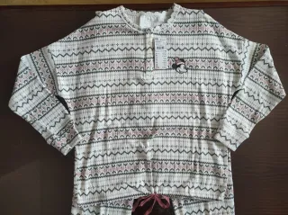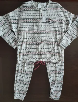 Conjunto de pijama de invierno para mujer, muy calentito y cómodo.con la etiqueta precio original 40€ - Diseño con estampado geométrico en la parte superior. - Tejido suave y agradable al tacto.