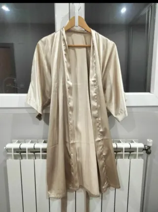 Elegante bata de raso con un bonito acabado satinado. - Tejido suave y ligero. - Diseño clásico con cinturón. - Talla única.