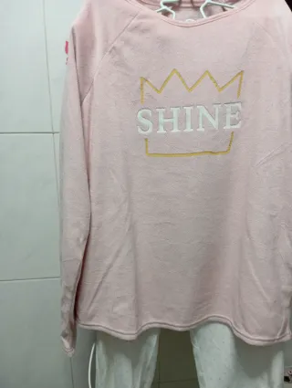 Conjunto de pijama para niña de UNIT KIDS. La parte superior es de manga larga con un diseño de corona y la palabra SHINE. Nunca se ha usado. Muy calentito. - Parte superior de manga larga. - Diseño de corona y SHINE en la parte delantera. - Pantalón con estampado de topos.