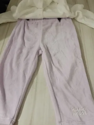 Conjunto de pijama para niña con diseño de Minnie Mouse. - Camiseta blanca de manga larga. - Pantalón lila. - Estampado de Minnie Mouse en la camiseta. - Talla 18 meses.