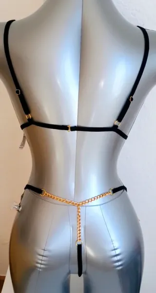 Conjunto de lencería sexy en color negro. Nuevo. - Detalle de aro con pedrería en el centro. - Encaje en los laterales del sujetador. - Braguita de corte alto.