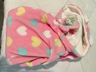 Medidas: Blusa: • 100 cm busto (y se estira) • 65 cm Largo • 56 cm Largo manga • 43 cm de hombro a hombro Pantalón: • 60 cm cintura (sin estirar)/80 cm estirado • 98 cm Largo • 106 cm Ancho (zona trasero) • 58 cm Ancho muslo Bata: • Capucha, bolsillo en cada lado, cordón, cremallera. • 100 cm busto (corte recto/se estira ligeramente) • 81 cm Largo (desde los hombros hasta abajo) • 57 cm Largo manga • 43 cm de hombro a hombro Tiene una rallita pequeña de color azul justo debajo del cuello (ver última foto). Blusa parecida a una franela, pantalones y bata como una manta polar.Ideal para mantenerse calentito. Envío rápido 📦🎁