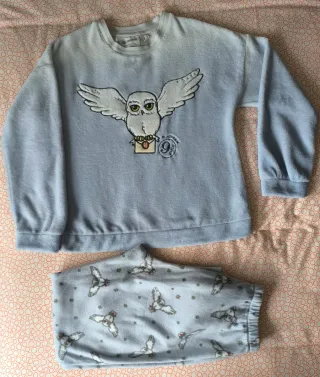 Conjunto de pijama de dos piezas con temática de Harry Potter, lechuza y carta andén 9 3/4 Con etiqueta. Largo, de material peludito, suave y cómodo. Ideal para coleccionistas. Talla M, equivalente a una 40. Nuevo a estrenar, pero con una primera lavada.