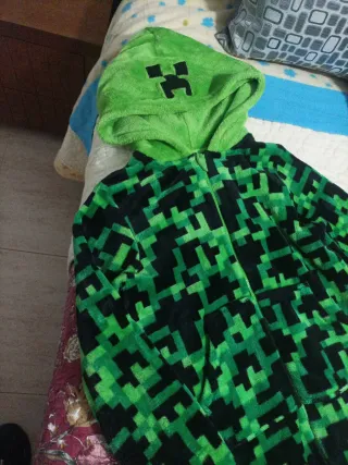 Pijama de una pieza con capucha, inspirado en el personaje Creeper de Minecraft. Ideal para los fans del juego. - 10/11 años 146 centímetros. - Diseño pixelado característico. - Capucha con la cara del Creeper. - Inscripción MINECRAFT en una de las piernas.