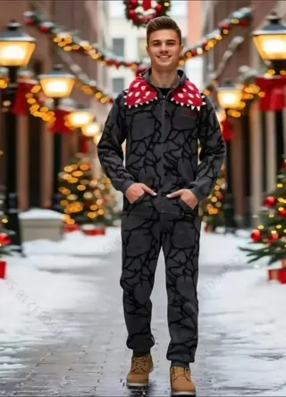 Pijama de una pieza con diseño inspirado en Demogorgon. - Tejido de forro polar térmico. - Estampado de ramas en contraste.