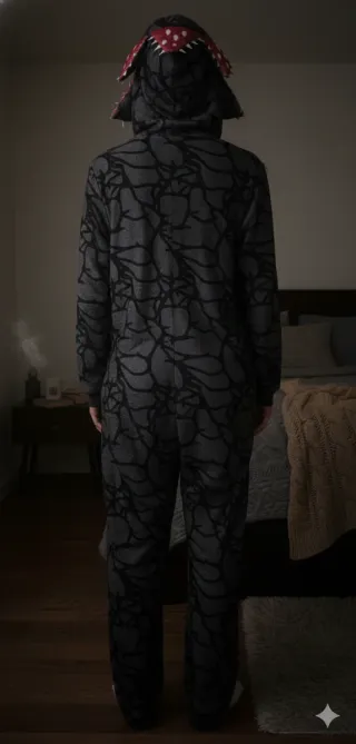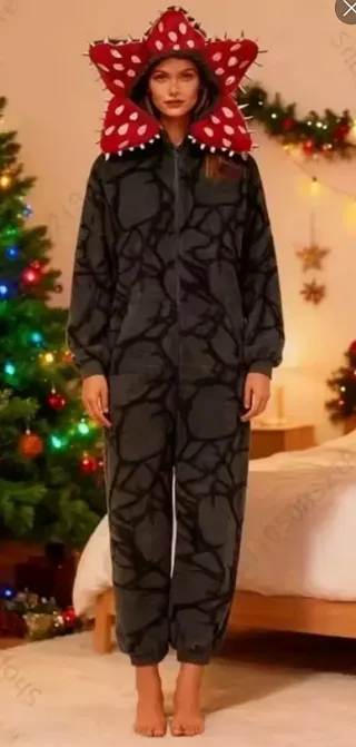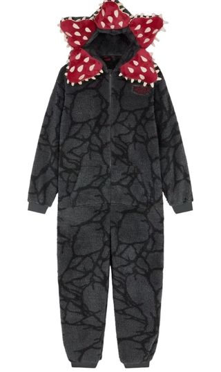 Pijama de una pieza con diseño inspirado en el Demogorgon. SIN ESTRENAR - Diseño de cuerpo entero. - Capucha con detalles del personaje. - Estampado de telaraña en toda la prenda.