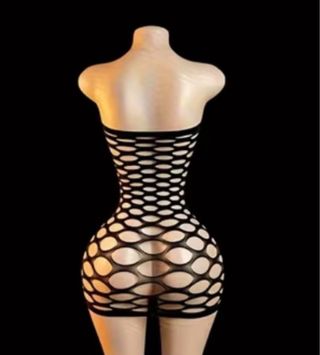 Este mini vestido de lencería es una pieza llamativa y sensual. - Diseño de red con aberturas. - Estilo tubo sin tirantes.