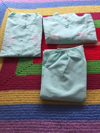 Conjunto de pijama con pantalón, incluye una parte de arriba de invierno y verano. Precio negociable
