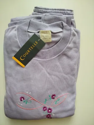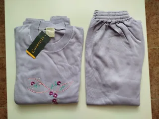 Pijama de invierno para mujer en color lila. con detalle bordado floral en la parte delantera. - Composición: 100% acrílico. - Cintura elástica en el pantalón para mayor comodidad. - Tejido suave y agradable al tacto. - MEDIDAS APROXIMADAS: *Chaqueta: hombro 51, pecho 50 y largo 61 cm. *Pantalón: largo 101 cm incluyendo el puño. - A pesar de estar SIN ESTRENAR tiene una manchita que casi no se ve en el pantalón como se ve en la última foto.