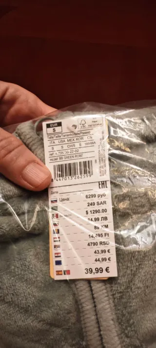 A estrenar. Pijama fino de manga larga y pantalon. Con bolsa de tela para guardarlo. Talla S pero grande mas bien M